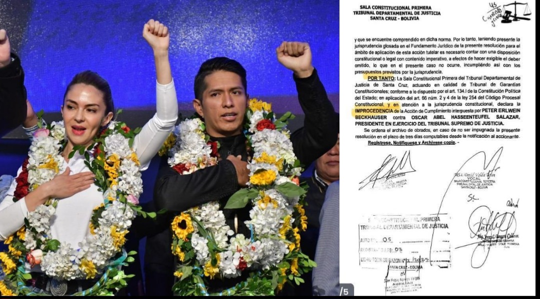 Santa Cruz, 20 de mayo de 2025.- La Sala Constitucional Primera de Santa Cruz resolvió este martes declarar improcedente el recurso presentado por Peter Erlwein Beckhauser contra el el Movimiento Tercer Sistema (MTS) que postula candidatura de Andrónico Rodriguez.
