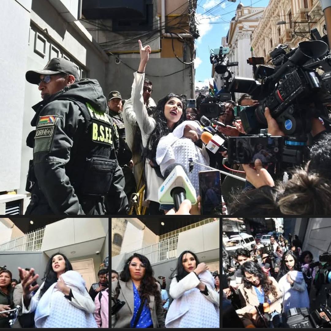 La Paz, 22 de octubre de 2025.- Con su hijo en brazos, cubierto por una manta blanca, Brenda Lafuente —quien denunció al presidente Luis Arce por abandono de mujer embarazada— intentó ingresar este miércoles a la Casa Grande del Pueblo para exponer su denuncia directamente contra el Jefe de Estado, a pocos días de que concluya su mandato, el próximo 8 de noviembre.