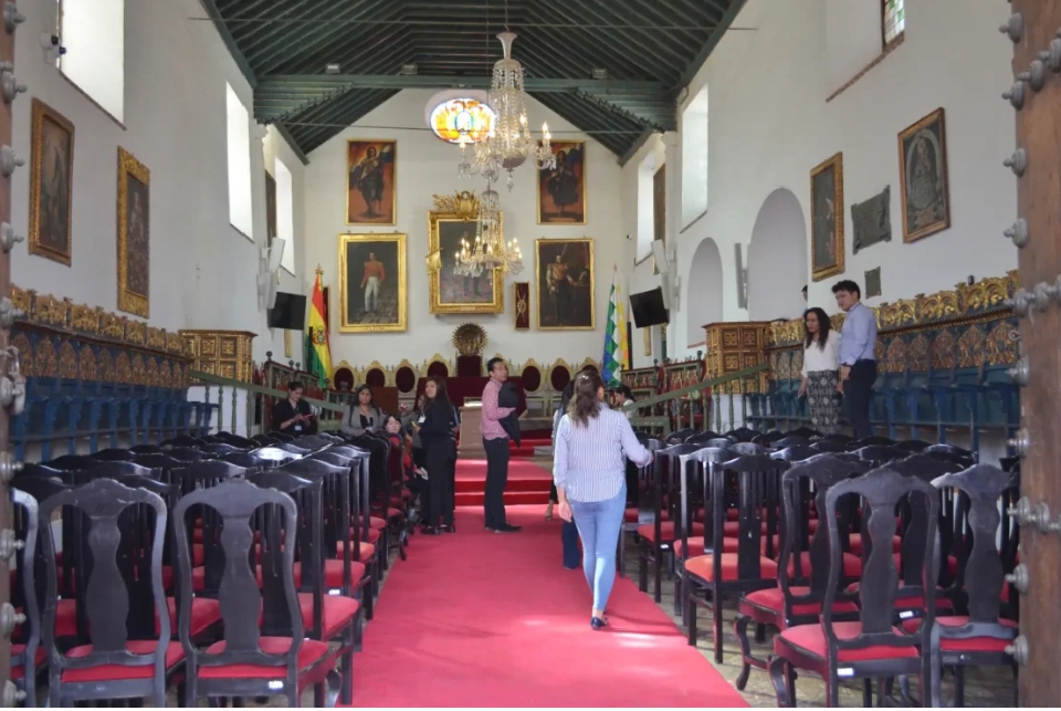 Asimismo, se realizaron reuniones de coordinación con el Gobierno Autónomo Departamental de Chuquisaca para organizar la logística y el apoyo protocolar necesarios para el desarrollo del evento. De igual manera, se definió el espacio destinado a los medios de comunicación que realizarán la cobertura periodística de la ceremonia.
