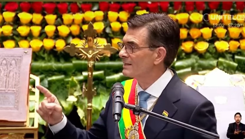 La Paz, 8 de noviembre de 2025.- Tras su juramento y luego de haber recibido la medalla presidencial, Rodrigo Paz se convierte en el presidente número 68 de Bolivia y se estrena como un mandatario que marca una línea de firmeza.