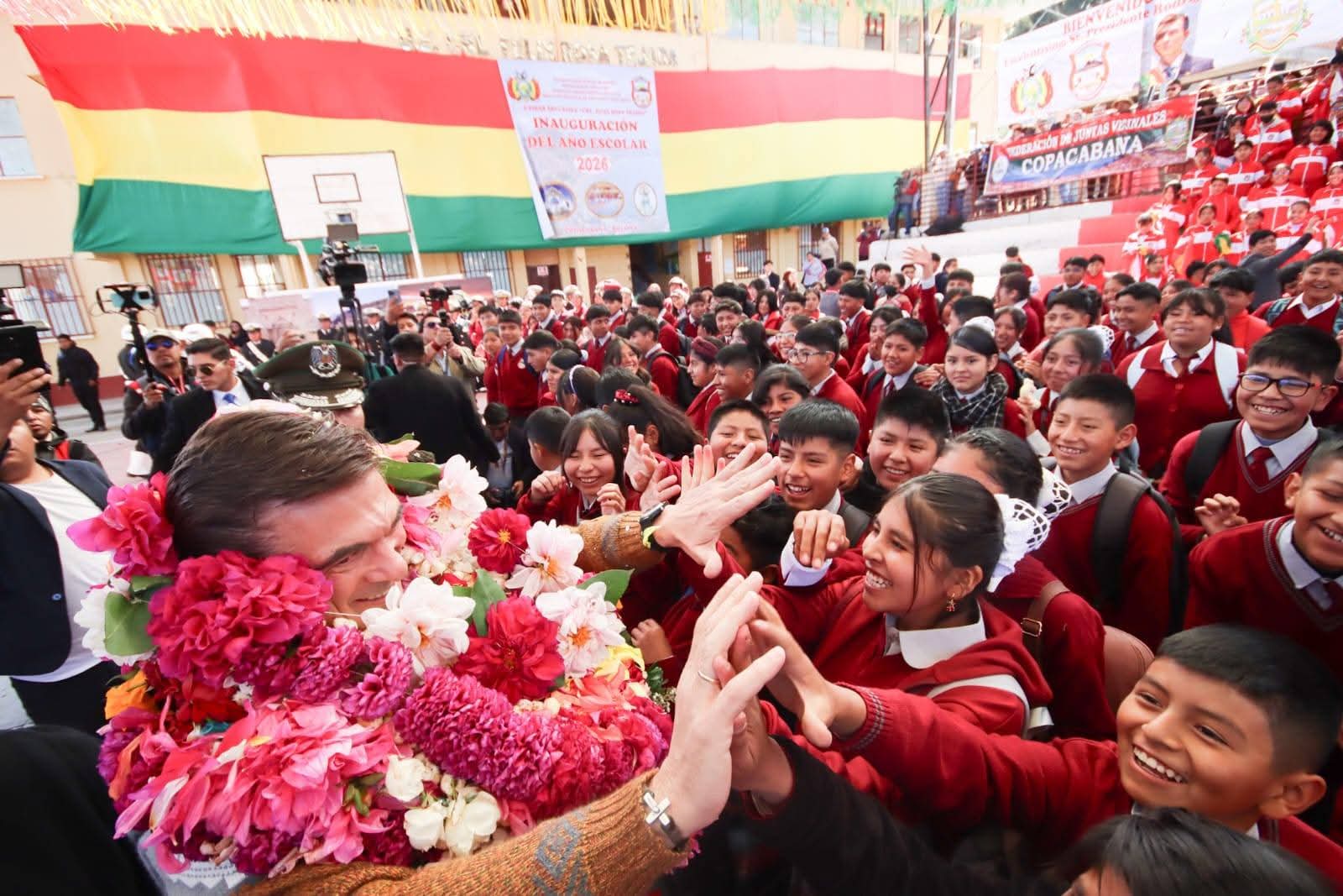 Cochabamba, 2 de febrero de 2026.- El presidente de Bolivia, Rodrigo Paz, inauguró oficialmente el año escolar en Bolivia desde la Unidad Educativa Coronel Félix Rosa Tejada en Copacabana, en el departamento de La Paz.
