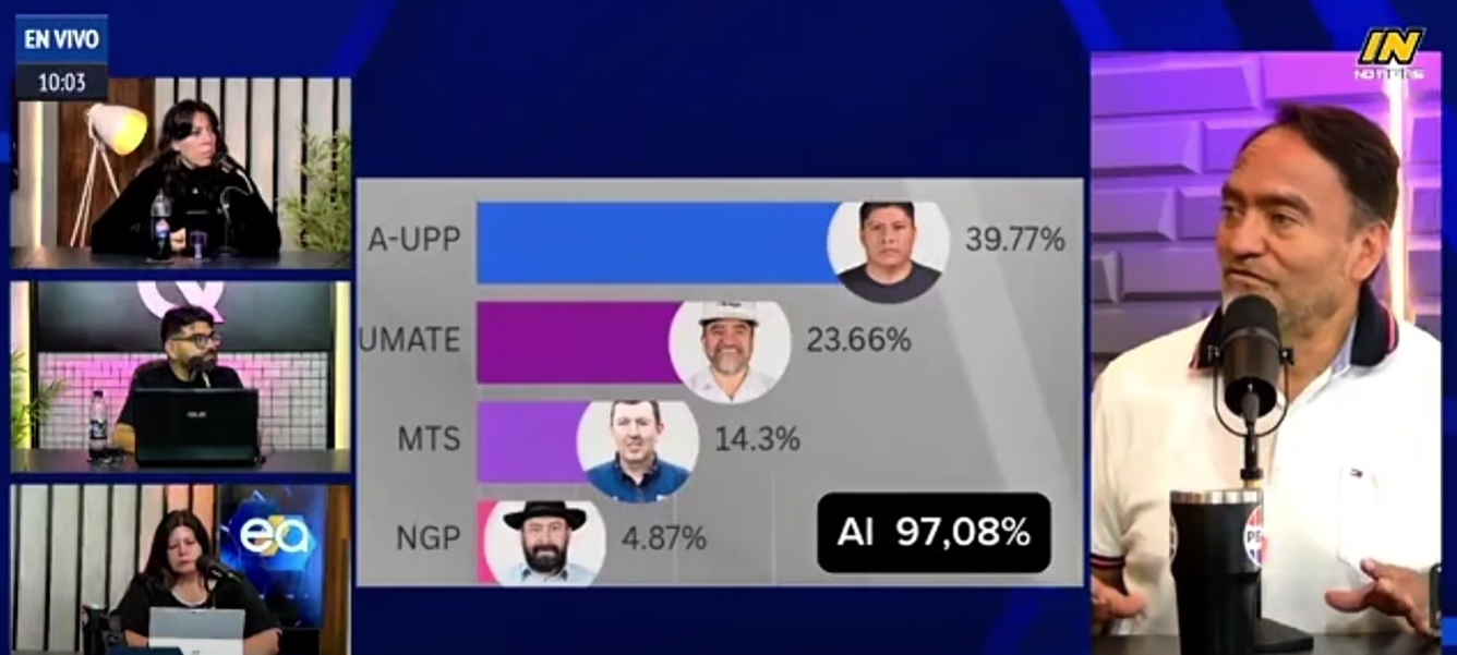 No obstante, el candidato insistió en que aún “hay que esperar el conteo oficial” del Tribunal Electoral Departamental y subrayó que “todo está en manos de Dios”, reiterando que respetará los resultados finales.
