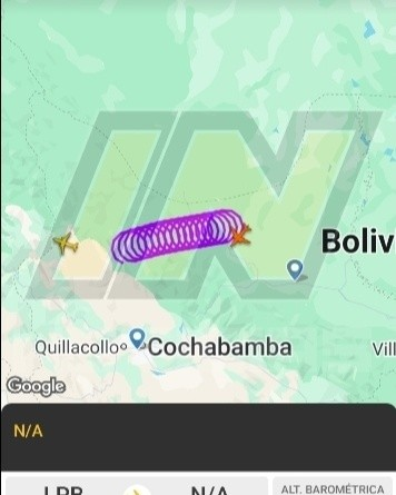 Cochabamba, 13 de Abril de 2026.- Una aeronave que cubría la ruta La Paz–Cochabamba generó alarma este lunes tras perder contacto con la torre de control, según datos de monitoreo aéreo.